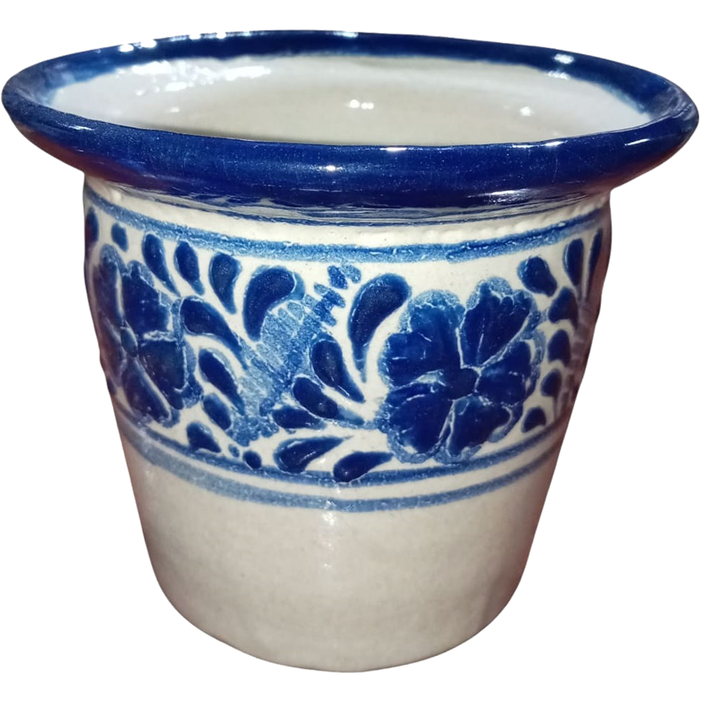 + EnvioMaceta talavera auténtca tipo cubeta flores azules.